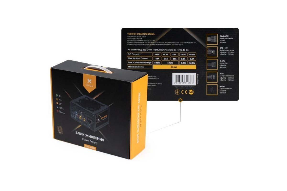 Блок живлення Vinga 600W (VPS-600B1)