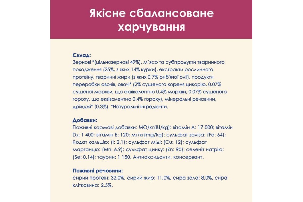 Urinary Tract Health з куркою 1.5 кгОсновні інгредієнти